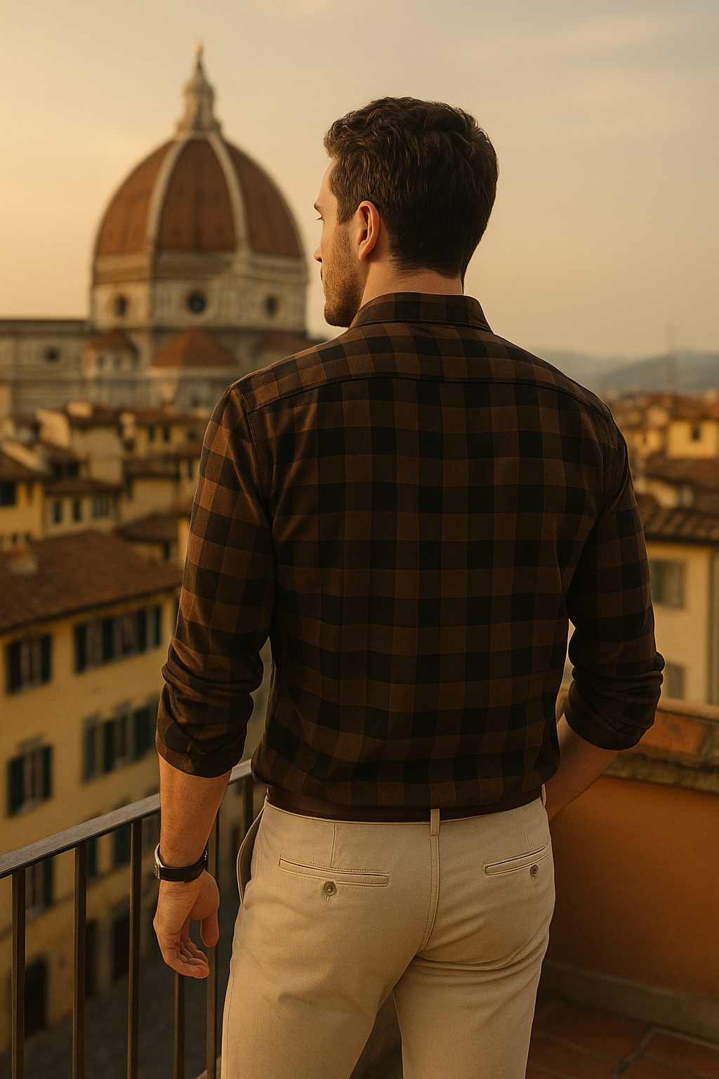 Men's Slim Fit Checked Button-Down Casual Shirt - Brown